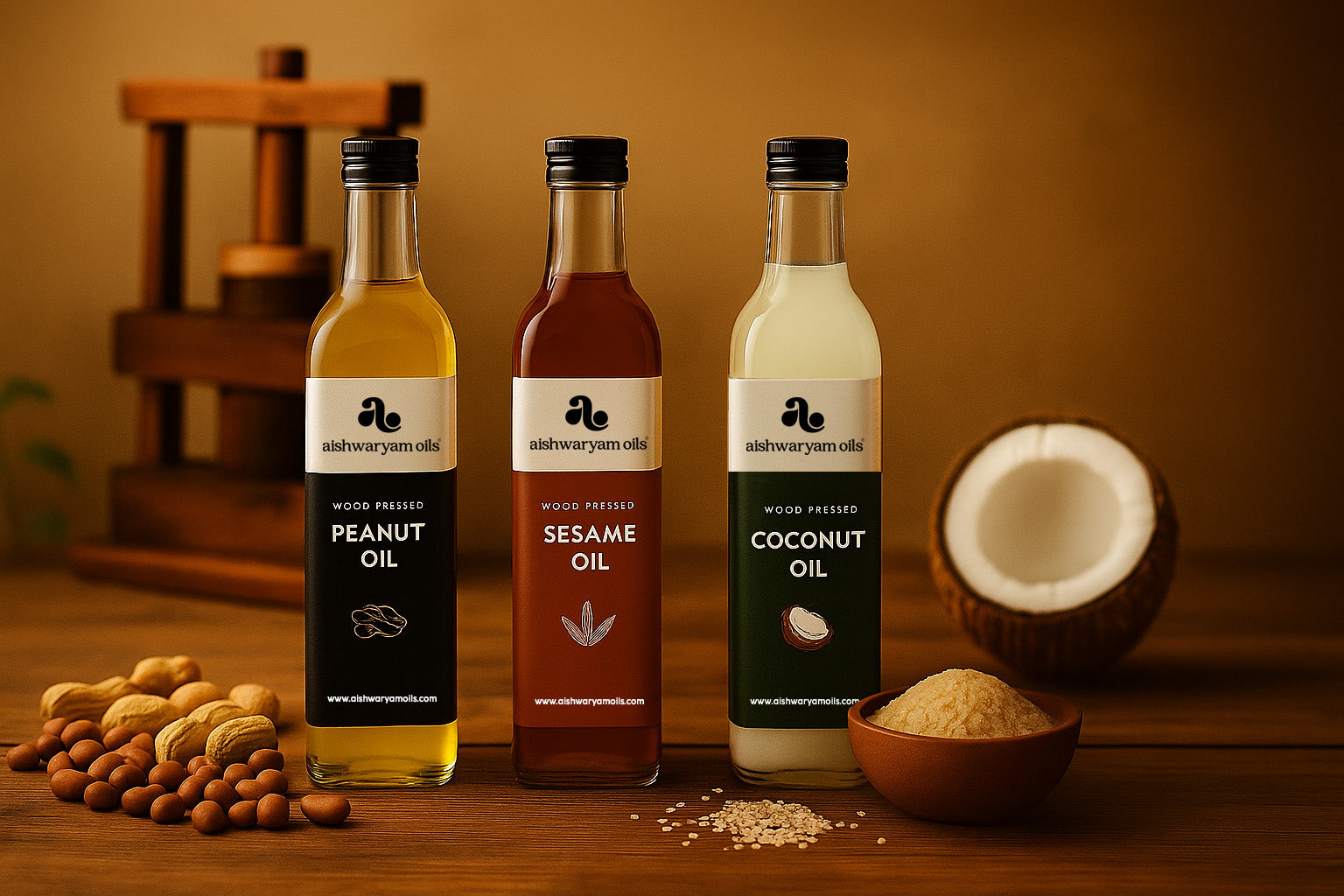 Made with traditional wood-pressing — rich in flavor, clean in nature.