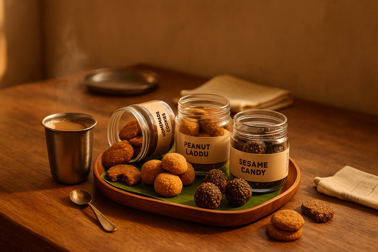 Homemade bites crafted with love — from sesame laddus to millet cookies.